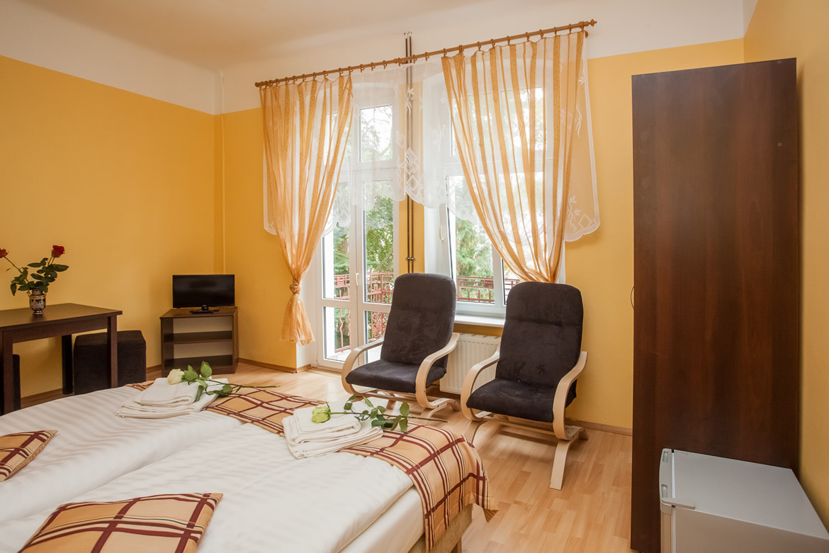 Do Państwa dyspozycji oddajemy 260 miejsc hotelowych w pokojach 1-, 2- i 3-osobowych, pokojach typu apartament oraz domkach letniskowych. W pokojach w Meduzie i Białej Mewie znajdują się estetyczne łazienki z natryskiem, umywalką, toaletą. Pokoje wyposażone są w czajniki elektryczne oraz darmowy Internet. Każdy domek letniskowy składa się z dwóch pokoi oraz wspólnego WC i umywalki oraz jest wyposażony w czajnik. Prysznice znajdują się w oddzielnym, ogólnodostępnym pomieszczeniu. Ośrodek oferuje pyszne, całodzienne wyżywienie w postaci śniadań i obiadokolacji.